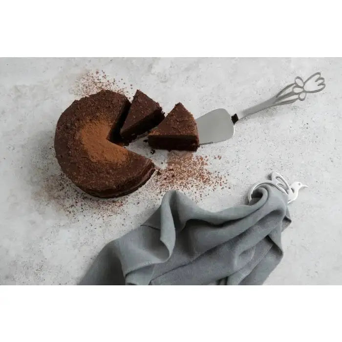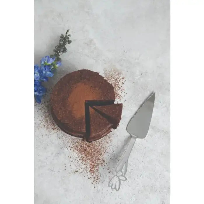 Introducing the CAKE LIFTER LONG from our elegant Daffodil range. Made with durable stainless steel and a sleek pointed tip, it effortlessly lifts and serves cakes with precision. The mirror polish and intricately laser-cut daffodil design make this a must-have for any sophisticated dessert display.